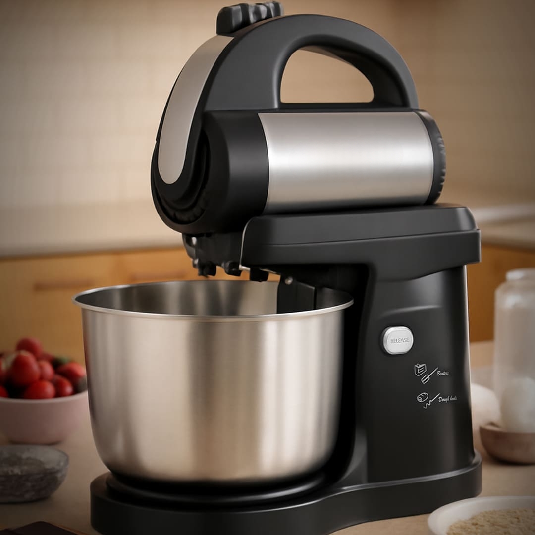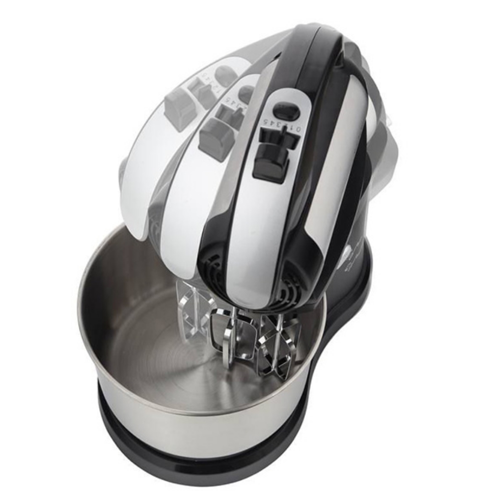 👇مشخصات کلی دستگاه ۳ کاره👇🔷️برند mrs کیفیت عالی🔶️رنگ:مشکی استیل 🔷️توان مصرفی:500 وات واقعی با سیم پیچی مسی🔶️تنظیمات سرعت:5 حالت مختلف سرعت🔷️دکمه توربو که یک لحظه با آخرین سرعت کار میکنه🔶️ظرفیت کاسه:3 لیتر استیل ضد زنگ🔷️نوع چرخش کاسه:اتوماتیک🔶️۲ سری مختلف همزن( خمیر زن؛خامه زن یا همزن)🔷️جنس پره ها استیل ضد زنگ🔶️دستگیره ارگونومیک 🔷️جنس بدنه استیل ضد زنگ و پلاستیک نشکن ABS🔶️پایه ضد لغزش که حین کار کردن نمیلرزه🔷️دارای کاردک برای تمیز کردن کاسه🔶️قابلیت شستشو تمامی لوازم جانبی دستگاه داخل ماشین ظرفشویی🔷️۲۴ ماه گارانتی و ۵ سال خدمات پس از فروش