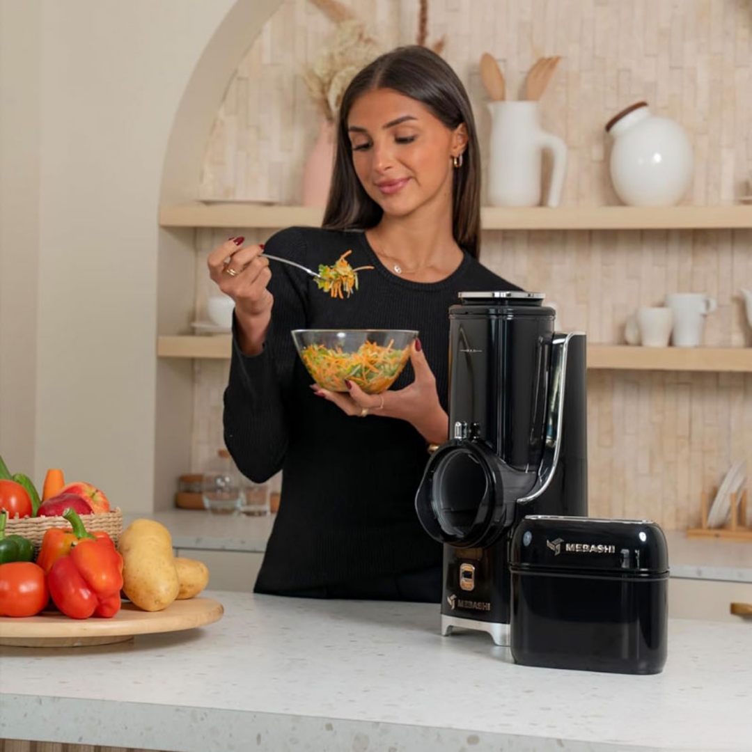 مشخصات کلی دستگاه👇🔹️سالادساز و رنده برقی مباشی 🔹️کشور سازنده چین تحت لیسانس آلمان🔹️رنگ:مشکی و کرمی 🔹️توان مصرفی:80 وات🔹️جنس بدنه:پلاستیک🔹️مشخصات فنی نوع موتور AC توان بالا و پایداری برای پردازش مداوم🔹️تعداد تیغه ها:7 عدد تیغه مختلف 🔹️استیل مقاومت در برابر زنگ زدگی و دوام طولانی.🔹️7 تیغه متنوع: از رنده تا برش مکعبی🔹️سیستم ایمنی:(dual feed ports), پیشگیری از خطرات: محافظت از کاربران., دو دهانه: برش دقیق برای اندازههای مختلف., سنسور ایمنی: فعالسازی تنها با نصب صحیح قطعات👇نوع کارکرد رنده ها👇🔹️رنده خلالی ریز و درشت: ایدهآل برای رنده کردن سبزیجات، پنیر یا میوهها در اندازههای مختلف.🔹️تیغه خردکن درشت : خرد کردن پنیر به صورت یکنواخت برای پیتزا یا سالاد.🔹️تیغه موجی شکل: ایجاد برشهای جذاب و موجدار برای تزئین غذا.🔹️چیپس ساز 2 میلیمتر و 4 میلیمتر: برش چیپس از سیبزمینی یا سبزیجات با ضخامت دقیق.🔹️تیغه معکب برش: خرد کردن نگینی مواد برای سالاد یا غذاهای دیگر
